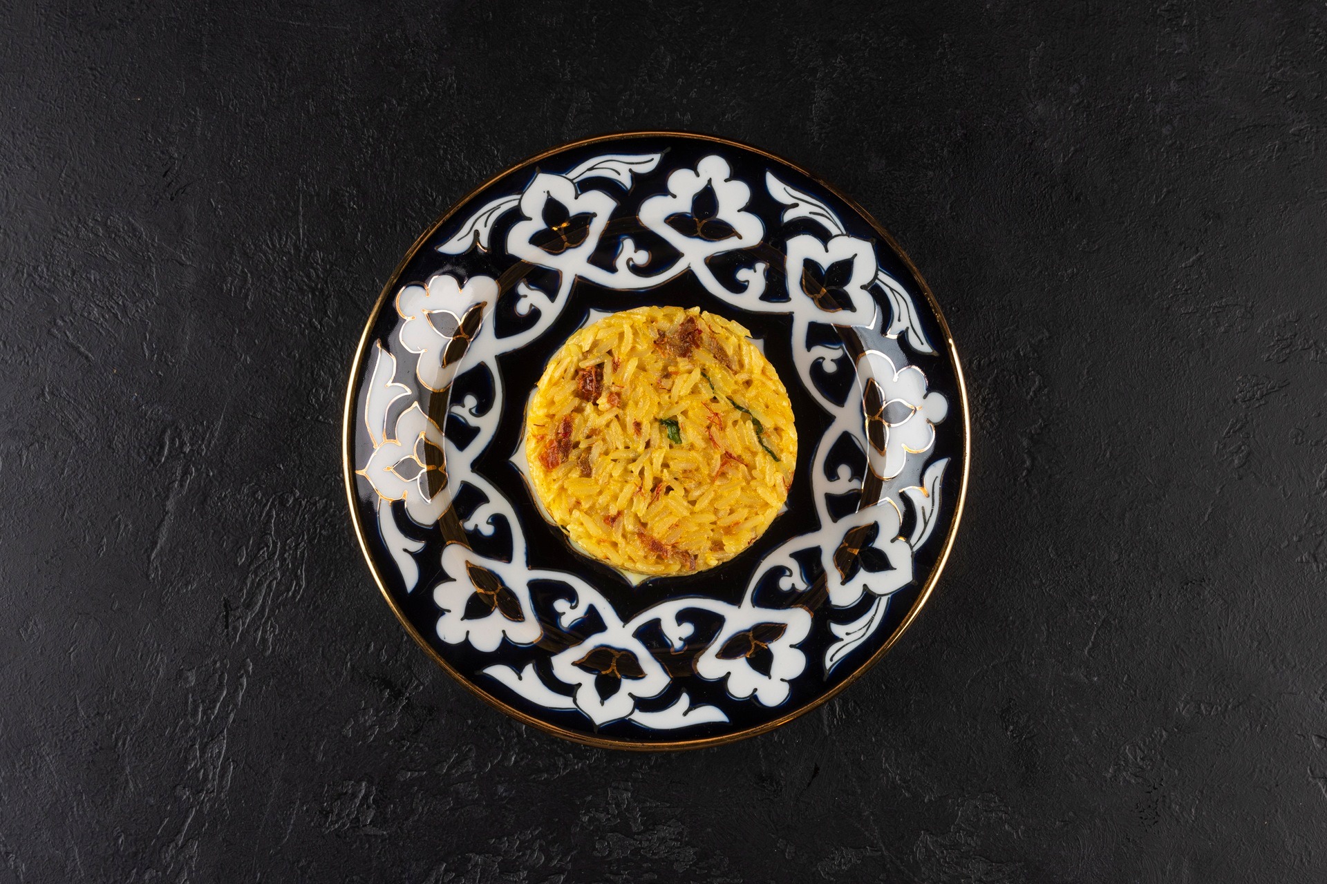 Eastern risotto with basil, sun‑dried tomatoes, turmeric, and cream.