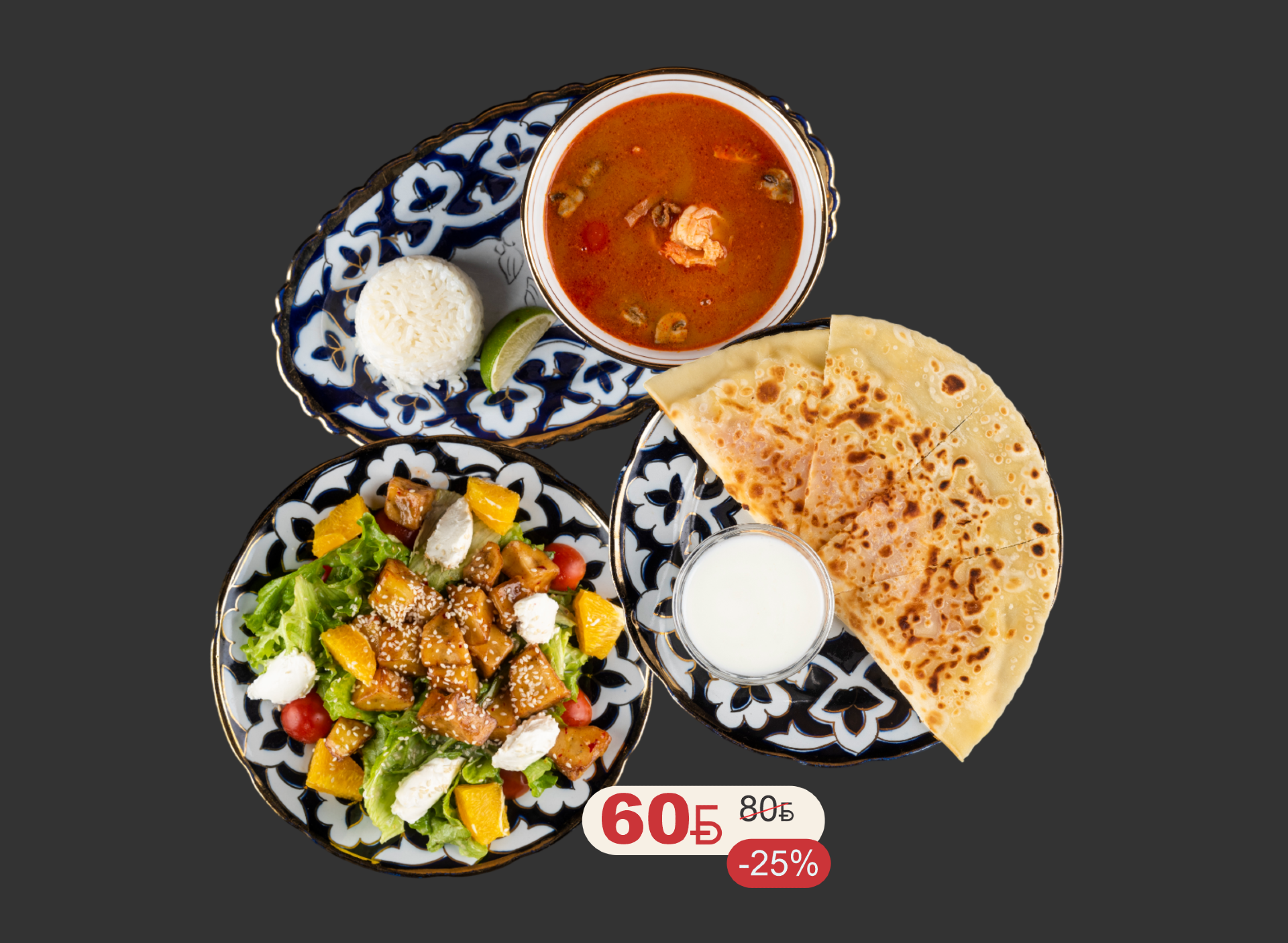 Пряный бульон, морепродукты, кокосовое молоко, шампиньоны, перец Чили, томаты Черри